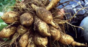 Las raíces frescas, contienen de 83 a 87% de agua. La materia seca de los tubérculos (MS) contiene 70 % de carbohidratos: